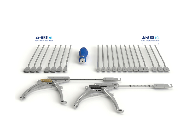 Vertical and Horizontal Cutters are designed in a single-unit shaft-blade allowing for incision stability, while the anatomic shaft design facilitates the insertion over the Patella. Dedicated configurations for the M-ARS ACL surgical technique are also available.